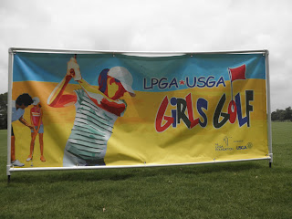 Monday brought camp (set-up, instruction, meals, wrap up) from 7am-4:30pm. I was stationed at SNAG (Start New at Golf) and lead with Full Swing Drills (we did the Game of 2's, how to warm-up and GOLF, just like the basketball game HORSE). I team taught with SNAG leader Kelly McCammon and then taught with LPGA pros Teri Johnson and Karen Palencios-Jansen (Cardio Golf instructor on the Golf Channel). Then came dinner with staff at the Ocean Course on the porch by the putting green before an immense storm rolled in that forced us into the Ryder Cup Bar - a great 2nd choice!